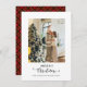 Joyeux Script de Noël Rouge Noir Plaid Tartan Carte photo, personnalisez avec vos détails.