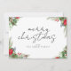 Joyeuse carte de vacances de Noël avec typographie écriture minimaliste et feuillage festif d'hiver.