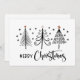 Merveilleuse carte de vacances en noir et blanc avec pins noirs qui ont une minuscule étoile dorée sur le dessus. Des fleurs de neige entourent les arbres. Joyeuse typographie de Noël est en tendance et ce script est magnifique! Voir la coordination des articles dans notre boutique.
