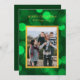Cette carte de vœux photo de vacances présente votre photo et les mots "Joyeux Noël" en faux papier doré sur un fond à motif de lumières bokeh vert émeraude. La carte a un fond vert foncé au verso.