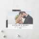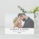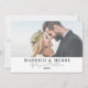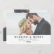 Célébrez votre premier Noël en couple marié en partageant votre joie avec vos proches grâce à cette carte simple et minimaliste. Avec l'expression "Marié & Joyeux" sur le devant, le design inclut vos noms et année mariage, ce qui en fait une façon parfaite de commémorer votre année spéciale. La carte présente deux de vos photos préférées, qu’elles soient du jour de votre mariage ou d’autres moments chéris ensemble, avec une subtile transparence blanche pour un effet éthérée. Vous pouvez facilement supprimer la transparence dans l'éditeur complet si vous préférez un look plus brillant. Cette carte est une belle façon d'envoyer des voeux chaleureux de vacances tout en célébrant votre amour. Marié Et Joyeux Marié À Venir Marié Carte De Noël De Vacances Simple Photo Élégante. Disponible sous forme de faire-part imprimé ou de faire-part numérique téléchargeable que vous pouvez envoyer par e-mail ou avoir imprimé localement !