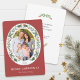 Cette carte festive de Noël présente un cadre photo ovale orné de verdure hivernale et de baies rouges. Personnalisez cette carte de vacances moderne et élégante en ajoutant votre photo, votre nom de famille et un message personnel.