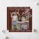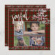 Carte de carré de Noël d'inspiration traditionnelle rustique 2 faces sur un grenat bordeaux foncé et arrière - plan à motif plaid vert chasseur avec des bordures et branches fleuries d'aquarelle gris et des branches de mistletoe floral et "Joyeux" écriture manuscrite. ++++++++++++++ Personnalisez-le avec 5 de vos photos - 4 photos à l'avant et 1 à l'arrière et avec votre signature / texte.