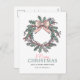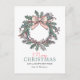 Cette carte postale de vacances présente une couronne de couleur pastel avec des feuilles verts, des baies roses, des sprigs de pin et un arc rose clair en haut, créant un look vintage et élégant. L'arrière - plan blanc simple permet à la couronne de se démarquer comme l'élément central, donnant à la carte une sensation festive mais sobre.