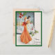 Jolie reproduction d'une carte de Noël vintage, elle a été éditée pour nettoyer l'image, et elle a une reproduction d'une carte postale vintage sur le dos pour que vous puissiez écrire un message. Envoyez-le par la poste ou donnez-le avec un cadeau de Noël pour ajouter une touche de fantaisie. Il présente un design de femme de style art déco avec une couronne de Noël et un petit chien. Customisez-le avec votre nom pour la personnalisation.