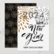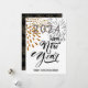 Joyeux Jour de l'An moderne Script Gold Silver Festive Fireworks Carte de vacances. Tous les textes sont pré-arrangés pour que vous personnalisiez facilement et rapidement avec vos propres détails. (Cartes avec photo de l'entreprise également disponibles