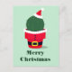 Une carte postale de Noël joyeuse avec un cactus en tenue Père Noël sur un arrière - plan vert clair. Père Noël Cactus Christmas Holiday Carte postale Jours fériés Design | ©Melissa Patton - Artiste/Illustrateur