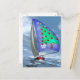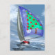 Un yacht avec un spinnaker d'arbre de Noël pour des salutations de vacances