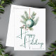 Cette superbe carte de Noël à typographie verte présente une belle aquarelle d'un ornement de fête et de feuilles de pin au-dessus d'une élégante écriture manuscrite indiquant Joyeuses Fêtes. Ces cartes de vœux modernes non photographiques sont un choix tendance et chic pour une famille élégante.