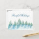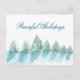 Paisible Forêt d'hiver Aquarelle Script Noël Carte postale de Noël. Aquarelle des arbres en hiver, forêt d'hiver avec neige aux couleurs bleu et vert. Le design est paisible et calme avec du texte à l'avant et à l'intérieur, en écriture élégante. Customisez le texte.