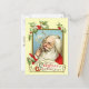 Vintage Noël Image de Noël du Père Noël fumant une pipe et envoyant des voeux de Noël. Il est encadré de feuilles saints et de baies.