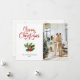 Photo personnalisée Joyeuse carte de Noël avec une police de caractères élégante et holly avec baies sur l'avant et flocons de neige à l'arrière. Personnalisez facilement cette carte de vacances moderne avec votre photo et votre texte.