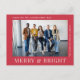 Carte postale de Noël d'entreprise rouge moderne avec une photo de votre équipe d'affaires et "Merry & Bright" en typographie blanche élégante. Personnalisez le nom de votre entreprise et le message de remerciement client/client dans une simple typographie blanche. Au dos, ajoutez un message de gratitude personnalisé supplémentaire.