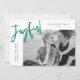Envoyez la joie à vos amis et à votre famille avec une carte de vacances Simply Joyful de Late Bloom Paperie! La carte de vacances moderne présente "Joyful" dans un script de brosse vert lettré à la main. Personnalisez l'avant de la carte en ajoutant votre photo, votre message personnalisé, votre nom de famille et l'année. La carte s'inverse pour afficher un motif à bandes en diagonale vert et blanc.