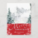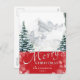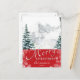 Carte postale moderne Red Pine Tree Snowflakes Bokeh Chic Script Minimalist Holiday. Souhaitez-vous à tous un Joyeux Noël et Bonne Année!