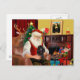Père Noël à la maison avec son Jouet Noir Poodle, relaxant devant le feu douillet avant le grand jour. Remarquez Mona Lisa sur le manteau tenant le même chien.