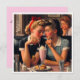 Cette carte de la Saint-Valentin évoque la douce nostalgie d'une romance dans un diner des années 50, où deux femmes partagent un milkshake, leur proximité murmurant des histoires d'une romance naissante sur fond intemporel d'Américana.