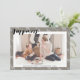 Rustique Brown Burlap Simple Script HAPPINESS Carte de vacances. Envoyez des voeux de vacances personnalisables et personnalisés à vos amis, collègues et famille dans des cartes de style simple, chic, élégant et moderne design photo festif, naturel minimaliste! Une belle calligraphie de "HAPPINESS" encadre votre photo en face. Ci-dessous la photo présente votre message de bienvenue personnalisé de votre nom de famille dans la typographie moderne. Inverser pour révéler un renne en arrière - plan de texture brun gris burlap.