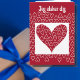 Carte de la Saint-Valentin danoise en rouge et blanc, les couleurs du drapeau du Danemark. Jeg elsker dig signifie Je t'aime en danois. Des cœurs blancs sur une carte rouge disant Jeg elsker dig. À l'intérieur se trouve la traduction anglaise -- Je t'aime en danois.