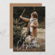 Cartes photos de vacances modernes avec votre photo verticale avec "Joyeux Noël" affiché dans un script blanc manuscrit. Personnalisez la carte photo de Noël avec votre nom de famille et l'année. La carte de vacances photo unique revient pour afficher un arrière - plan marron-caramel avec des points blancs subtils.