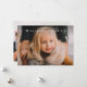 Simple écriture manuscrite Photo Christmas Holiday Card présente une typographie de superposition Joyeux Noël en lettré à la main sur le devant. Le dos a une photo supplémentaire et un message de vacances chaleureux de la famille. Cliquez sur le bouton Modifier pour customiser cette conception.