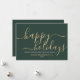 Simple carte de vacances minimaliste verte avec un élégant script moderne lisant "Happy Holidays" dans une belle couleur or. Cette carte est entièrement personnalisable. Vous pouvez modifier n'importe quel message avec celui de votre choix. Offrez de la joie et de la chaleur à vos collègues et clients grâce à notre carte magnifiquement conçue. Joyeuses fêtes !