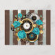 Cartes Pour Fêtes Annuelles Steampunk Clock and Turquoise Roses on Striped