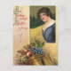 Illustration vintage Carte postale Thanksgiving avec une femme et une cornucopie de fruits avec le texte "All Thanksgiving Bounty Be Thine."