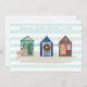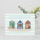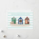 Le design turquoise de la carte de séjour côtière de Nautical Boutique Co. comprend trois cabanes de plage aquarellisées décorées pour les vacances et est placé sur des bandes d'aquarelle turquoises assorties. L'envers est doté d'un accueil nautique personnalisable. #Nautical #CoastalChristmas #Holidays #NauticalHolidays