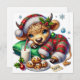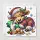 Apportez de la chaleur à la saison avec cette carte de vacances plate et confortable représentant une vache Highland habillée de pyjamas festifs, entourée de biscuits et de lait pour le Père Noël. Un design doux et charmant pour tous les âges.