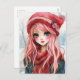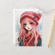 Illustration adorable d'une fille portant un casquette rouge sur une scène hivernale.