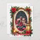 A festive postcard framed in golden holiday charm—poinsettias, holly, berries, and glowing candles surround a customizable oval photo. Snowflakes fall over cozy smiles, while “Merry Christmas” script adds warmth. Personalize front and back with heartfelt holiday messages.