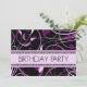Invitations pour la fête d'anniversaire d'une fille avec la conception tourbillonnante pourpre et noire élégante, élégantes et assez, entièrement personnalisable avec vos détails de partie.