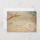 Rustic Beach Destination Wedding Cartes RSVP avec un style étoile de mer et dollar de sable. Ils sont parfaits pour un mariage à la plage ou un mariage de destination. Il a un look grunge en mauvais état avec des éclats de couleur marron et bleu dans tout le design arrière - plan.