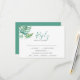 Conçue pour coordonner avec mes suites de papeterie mariage tropicale, cette carte de boîtier rsvp présente ma feuille de palmier botanique moderne aquarelle de monstère dans les tons turquoise, bleu et vert. Un espace est prévu pour que les clients puissent ajouter leurs réponses et un choix de repas simple. La carte revient à une couleur turquoise offerte. Idéal pour les mariages de destination en Floride et à Hawaii ainsi que les mariages de plage de printemps et d'été. Pour voir la papeterie mariage assortie aux oeuvres originales de Victoria Grigaliunas, visitez www.zazzle.com/dotellabelle
