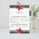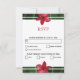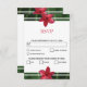 Ce design présente des fleurs de frangipanier / de plumeria rouges. Un design tropical élégamment encadré de fleurs de frangipanier rouges et de feuillage vert. Le titre est accentué par la couleur rouge assortie aux fleurs. Le verso du design imite l'autre côté. Ces fleurs tropicales hawaïennes populaires sont idéales pour un mariage rustique sur une plage de destination. Design de carte de réponse d'acceptation de RSVP de mariage tropical avec des éléments modernes. Les invitations de mariage et autres articles de papeterie assortis sont également disponibles.