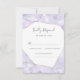 Cartes RSVP élégantes pour coordonner avec notre élégante collection de mariages géométriques violet et or, avec une ligne supplémentaire pour tous les besoins alimentaires que vos invités peuvent avoir ainsi que du texte supplémentaire à l'arrière qui est optionnel. © Mini Moi Prints