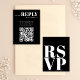 Vous recherchez une carte RSVP moderne et élégante pour le code QR Mariage ? Regardez nos cartes RSVP Black Blanc pour le code QR Mariage. Doté d'une calligraphie audacieuse qui ajoute une touche de sophistication, ce rsvp noir et blanc avec code qr offre un look propre et simple. Vous pouvez ajouter une URL pour générer un code QR. La palette monochrome renforce l'attrait intemporel. Ce rsvp de mariage minimaliste a une torsion moderne qui va captiver ceux qui ont l'oeil pour une sophistication subtile. Carte de code qr de mariage rsvp minimaliste !