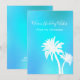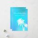 Cartes de Noël plates aux tons bleus aqua tropicaux avec des silhouettes blanches de palmiers et des textes. Personnalisez un message et ajoutez une signature à des cartes de vacances simples et uniques avec un thème tropical. Le verso est bleu.