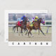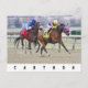Winter racing at historic Aqueduct Racetrack, home of the prestigious Wood Memorial stakes. Jockey Eric Cancel is in full control as he powers to the lead with his powerful bay colt Carthon. Wearing purple and yellow silks, the rider is on his way to victory.