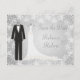 Faire-part de mariage Smoking et robe sur fond de flocons de neige argentés