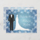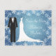 Faire-part de mariage Smoking et robe sur fond de flocons de neige bleus