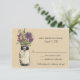 Carte de réponse RSVP parfaite pour un mariage champêtre ou peut-être que vous aimez simplement les pots Mason ! Un fond de couleur crème en détresse avec un dessin noir d'un pot Mason rempli de fleurs sauvages campagnardes violettes framboise, prune et vertes. Cette carte est configurée comme une carte postale à envoi automatique. Si vous avez des questions sur ce design ou si vous souhaitez une modification de couleur, veuillez m'envoyer un courriel à paula@labellarue.com. Vérifiez également les cartes de réponse RSVP, de RÉCEPTION et de PLACEMENT DES INVITÉS pour assortir !