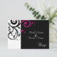 Petite carte de réponse à insérer pour accompagner notre invitation de mariage tourbillon magenta envers noir et blanc, avec un motif graphique audacieux de feuilles en volute sur fond. Personnalisez en ligne avec les détails de votre mariage.