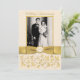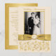 Cette élégante invitation photo de 50e anniversaire de mariage en floral doré et ivoire avec des volutes comporte un ruban doré IMPRIMÉ et un médaillon doré et ivoire avec un aspect faux-gravé imprimé. Elle comporte une zone de modèle pour que vous puissiez télécharger votre propre photo numérique. Vous pouvez supprimer le texte stylisé en cursive "Anniversaire de mariage" ou "50e". Tout le texte est personnalisable, ainsi que les choix de papier. AUSSI, si vous changez de police ou de taille de police, votre texte risque de ne plus convenir correctement. Zazzle ne modifiera rien pour les fautes de frappe, l'alignement ou autre, et je ne verrai pas votre invitation. Tout sera imprimé tel qu'il apparaît sur votre écran. Si vous avez besoin d'aide pour l'invitation, veuillez me contacter AVANT de la commander. Cette invitation est conçue pour s'adapter au format de carte 5x7. Si vous changez de taille, le design ne conviendra plus correctement, alors si vous souhaitez une taille différente, veuillez me
