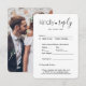 Partagez une de vos photos de fiançailles ou de mariage avec ces cartes RSVP élégantes et polyvalentes. Image et tout le texte sont simples à customiser. (CONSEIL EN MATIÈRE DE PLACEMENT D'IMAGE : Une façon simple de centrer une photo exactement comment vous voulez est de la rogner avant de la télécharger sur le site Zazzle.) La carte comprend les choix de repas, les allergies alimentaires, la demande de chant et l'option de répondre en ligne par l'intermédiaire d'un site Web ou d'une adresse électronique. Toutes les informations de réponse peuvent être personnalisées ou supprimées. Le design noir et blanc présente une typographie minimaliste moderne, une calligraphie manuscrite et 1 photo de votre choix. Cette carte est une façon élégante de demander aux invités mariages de répondre gentiment à votre prochaine célébration de la journée spéciale.