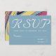 Design moderne avec un front rsvp bleu rétro uni avec marbre tourbillon coloré artistique abstrait motif inverse carte de mariage personnalisée RSVP. Palette de couleur bleu rose jaune. Cette carte est facilement modifiable. Si vous avez besoin d'aide pour la personnalisation de ce produit ou si vous avez besoin de plus de produits correspondants pour cette collection, envoyez-moi un message aimable via Zazzle.