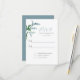 Carte RSVP de mariage Feuille couleur Aquarelle bleu vert conçu avec des branches bleu-eau douce et vert sur un arrière - plan blanc. Le texte comprend : RSVP, Votre réponse par date et espace pour que les invités complètent leur réponse. Pour personnaliser, insérez simplement votre réponse par date dans notre modèle facile, en remplaçant l'exemple de texte. N'oubliez pas de consulter l'ensemble de la collection de mariage élégante Feuille Aquarelle Bleue Vert pour les cartes et accessoires correspondants.