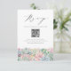 Cette carte RSVP de code QR personnalisable présente une aquarelle illustrant une guirlande rose pastel et verte succulents. Personnalisez cette carte RSVP cactus en ajoutant vos propres détails. Cette carte RSVP succulente est parfaite pour les mariages, les douches nuptiales, les événements d'entreprise et d'autres événements.