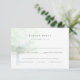 Carte de réponse élégante « Arbre brumeux » avec sélection de repas, représentant un chêne à l'aquarelle brumeuse et sereine debout seul, symbolisant un amour durable. Le design fait partie de la collection de mariage « Arbre brumeux ». Au dos de la carte, la sensation de légèreté et d'air est complétée par des textures à l'aquarelle.